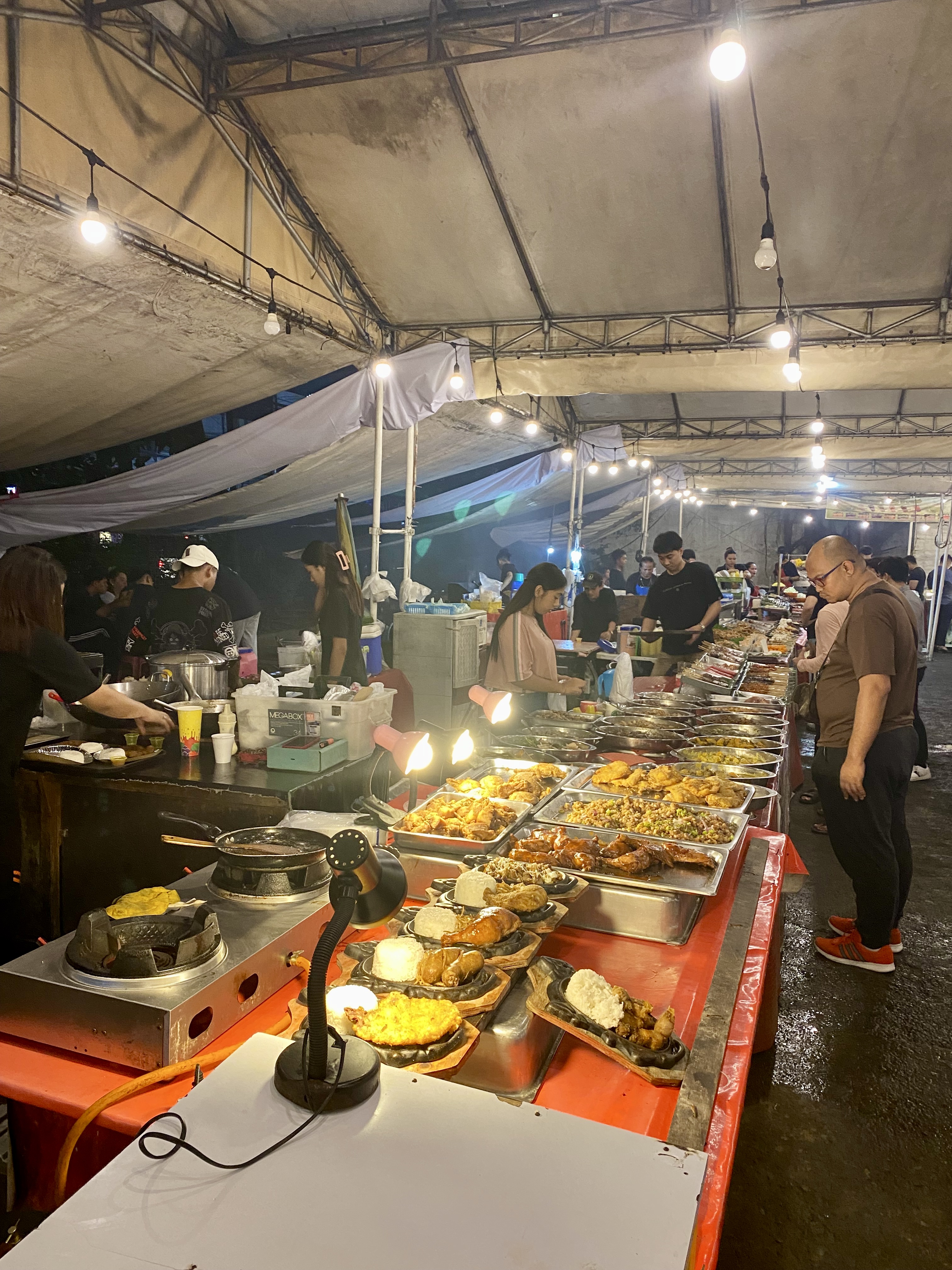 Dès le premier soir, nous renouons avec les night markets si symptomatiques de l’Asie du Sud-Est. Il y en a un juste à côté de l’hôtel. Nous avons déjà passé deux mois en Thaïlande et au Cambodge et adorons cette ambiance. Nous retrouvons cette douceur de vie et ces sourires sur les visages. Nous sommes comblés. 🤩