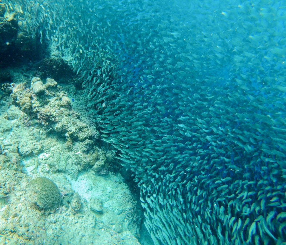 Un nombre significatif d’expats français se sont installés dans la petite bourgade de Moalboal. Nous avons échangé avec un français qui a créé sa boulangerie, un autre un restaurant, un autre une boite de nuit,… C’est intéressant de discuter avec eux de leur parcours de vie. Les touristes viennent à Moalboal en grand nombre pour nager dans d’immenses bancs de sardines… et nous faisions partie du lot. Nous avons nagé pendant au moins deux heures dans une eau hyper chaude au milieu de bancs gigantesques. Il y avait même des barracudas. C’est bien mais « pas de ouf » comme dit Théo. Un peu trop touristique.