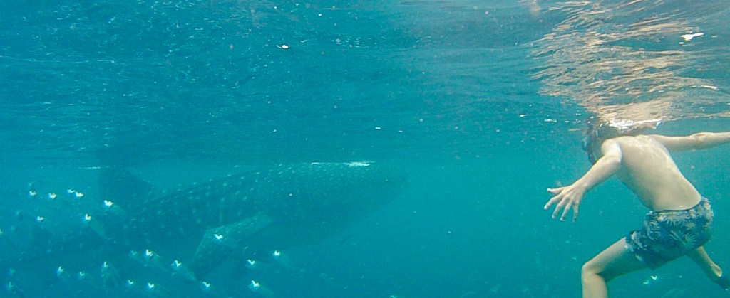 Le lendemain nous avons donc pris le van pour aller sur le spot de plongée mais bien que levés très tôt nous n’avons malheureusement pas pu échapper à la horde de touristes. La file d’attente était très très importante. A l’arrivée, l’organisation nous donne un numéro et un gilet de sauvetage (obligatoire). Nous payons 2 500 PHP pour nous 5 (41 €). Après une attente plutôt longue, nous grimpons dans une petite embarcation qui se dirige à une trentaine de mètres vers les requins-baleines (appelés aussi les « doux géants »).
