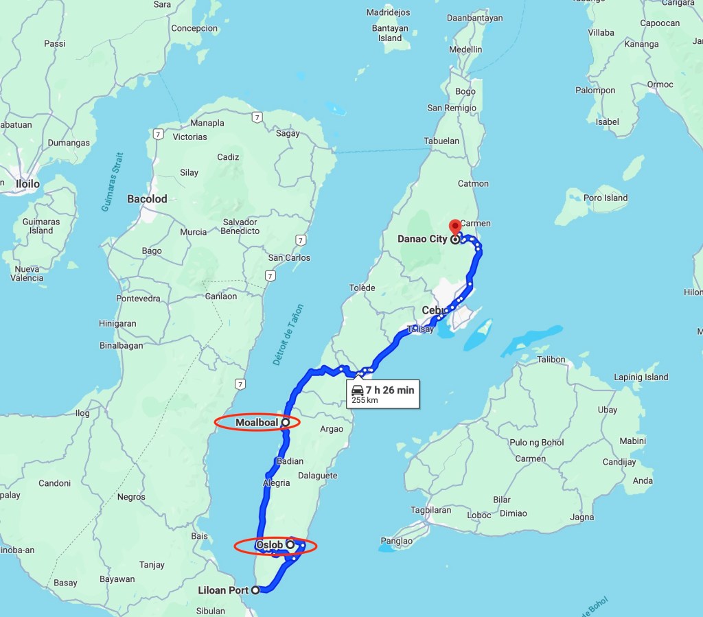 Tip : Ne prenez pas le même itinéraire que nous ! Nous avons fait dans l’ordre Oslob, Moalboal et le port de Danao. Nous aurions du faire Moalboal, Oslob puis le port de Danao. Cela nous aurait fait perdre moins de temps dans les transports.