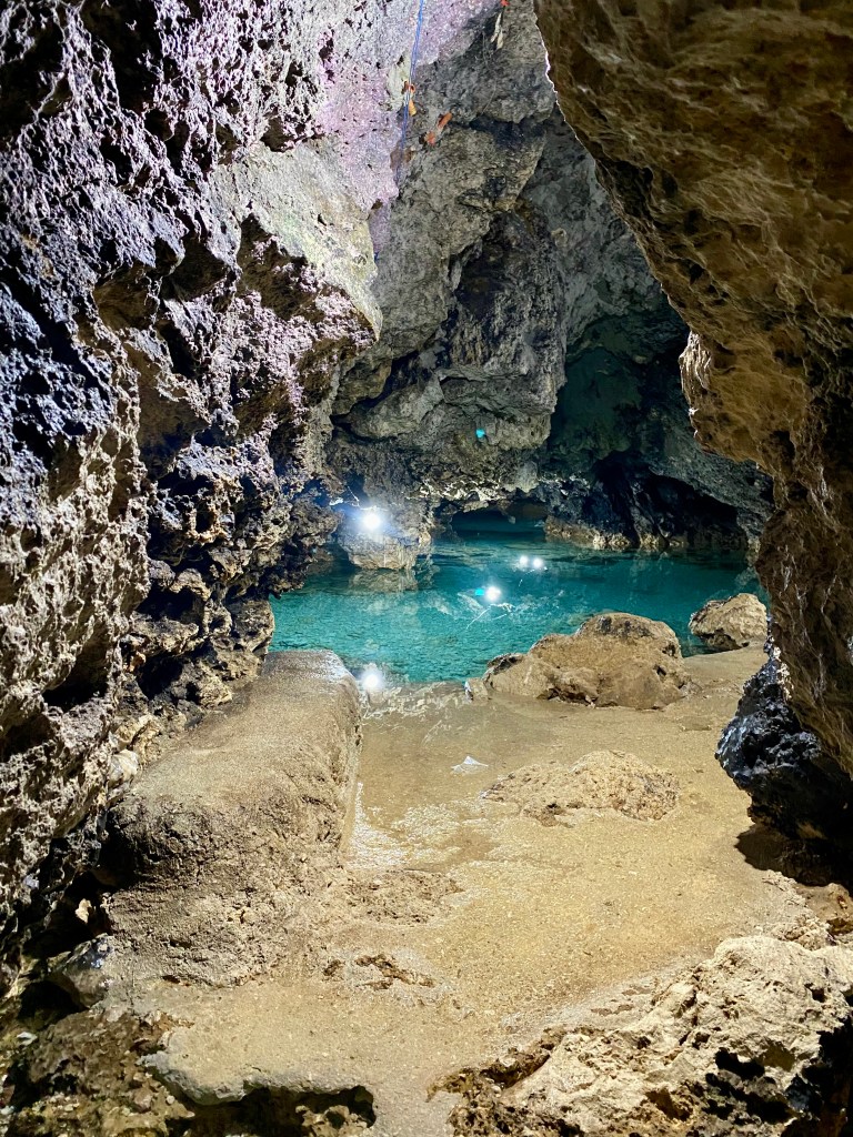 Philippe nous a conduit jusqu’à la grotte de Timubo cave et nous nous sommes baignés dans un lac à 70 mètres sous terre. Sensation unique ! Claustrophobes s’abstenir. 😱