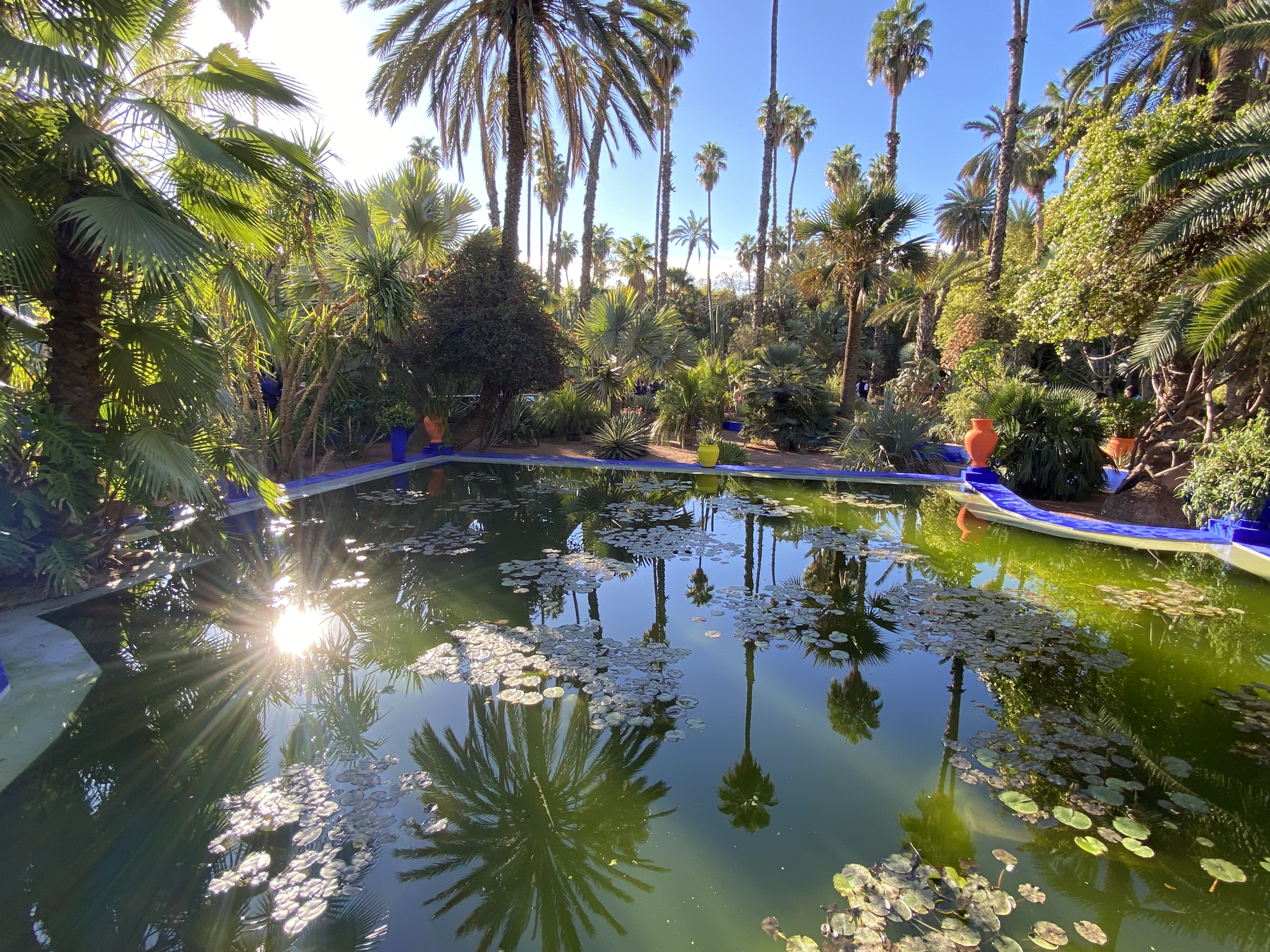 Au programme aujourd’hui : le Jardin Majorelle, le Musée Yves Saint-Laurent, le quartier du Guéliz, les tombeaux saadiens et le souk des épices.