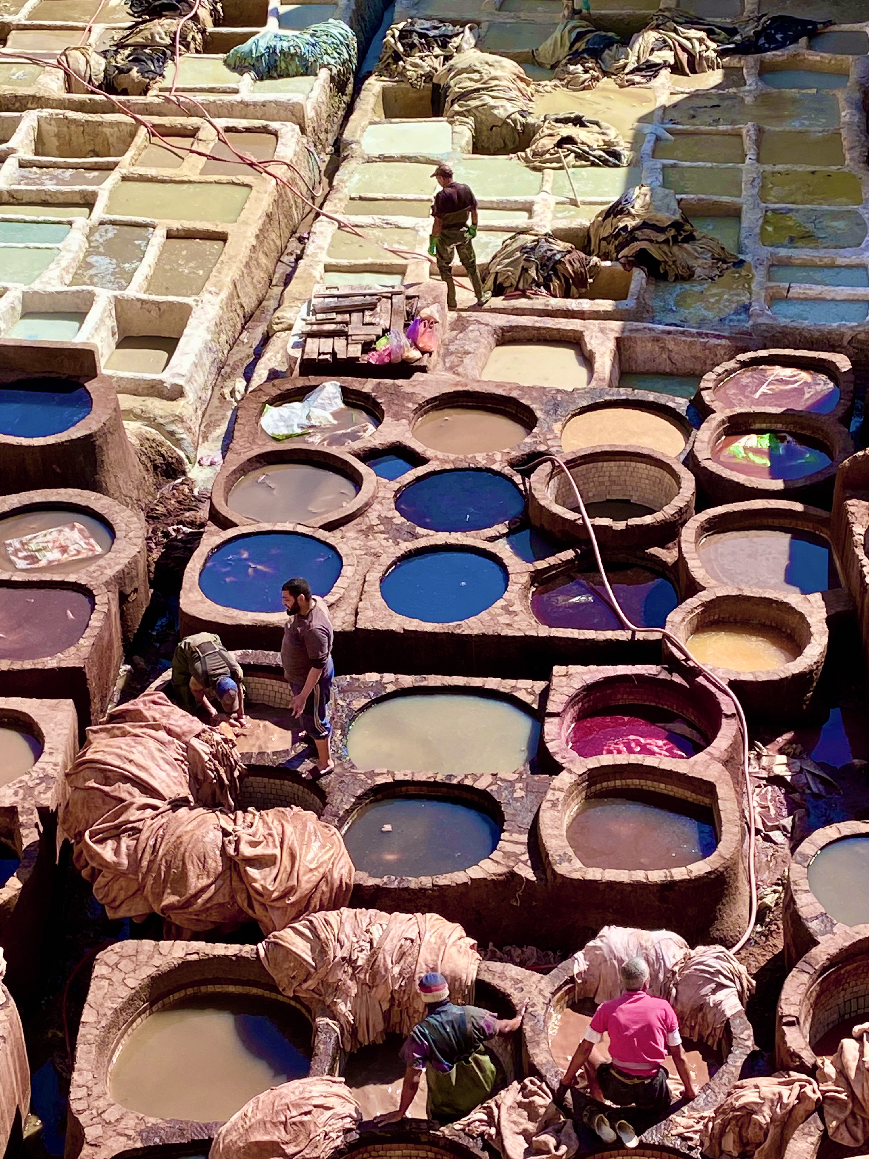 En début d’après-midi, nous allons au souk des teinturiers pour visiter les tanneries. Elles sont moins grandes que celles de Fès mais tout aussi typiques. Pour ceux qui craignent les odeurs (très) fortes, une feuille de menthe sous le nez peut vous aider.