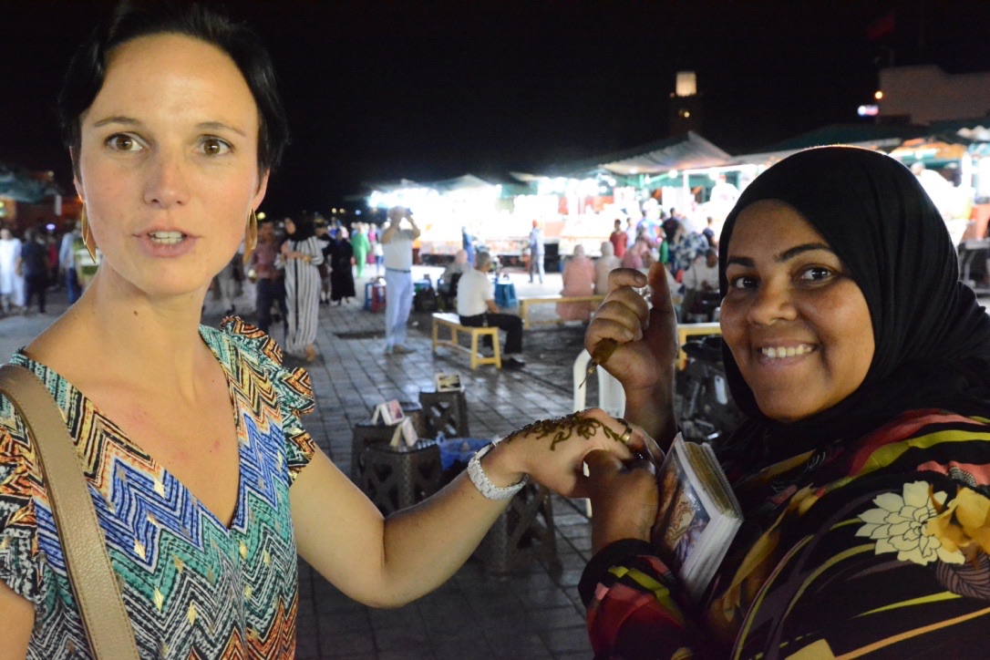 C’est le centre névralgique de vieille ville appelée Médina. La place est inscrite au patrimoine culturel de l’humanité et constitue le coeur battant de la ville. Dans la journée, l’ambiance est plutôt calme. On peut voir des charmeurs de serpents, des stands d’épices et d’artisanat, des tatoueurs au henné, des dresseurs de singes, des montreurs de caméléons et des vendeurs de jus de fruits qui nous interpellent gentiment (20 Dh le grand verre). On adore ! ❤️ Certes, c’est très touristique mais c’est Marrakech. Le soir, l’ambiance est plus intense grâce aux musiciens, aux acrobates et aux spectacles de rue. Des dizaines de stands de street-food investissent les lieux et servent méchoui, harissa, couscous, tajines, brochettes… On vous conseille de manger ailleurs car même si l’ambiance est sympa le rapport qualité-prix n’est pas vraiment au rendez-vous.