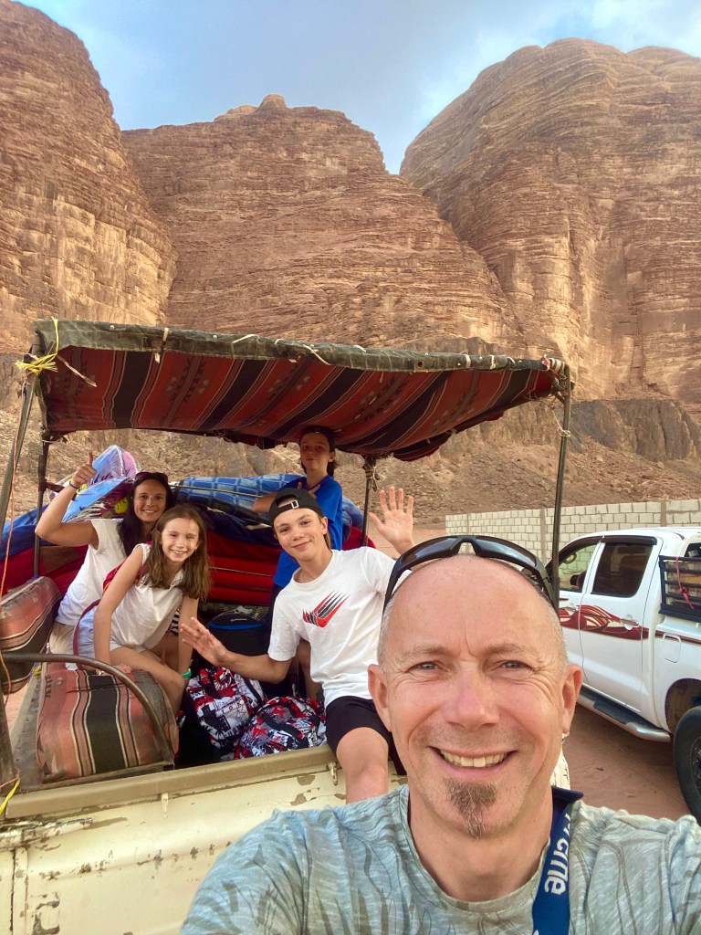 En octobre 2023, c’est en Jordanie que nous avons décidé de poser nos sacs à dos. Dix jours dans le royaume hachémite ! Nous en rêvions depuis longtemps. 🥰 Comme d’habitude, Anaïs et moi voyageons avec nos trois ados : Hugo (14 ans), Théo (12 an) et Margaux (11 ans).