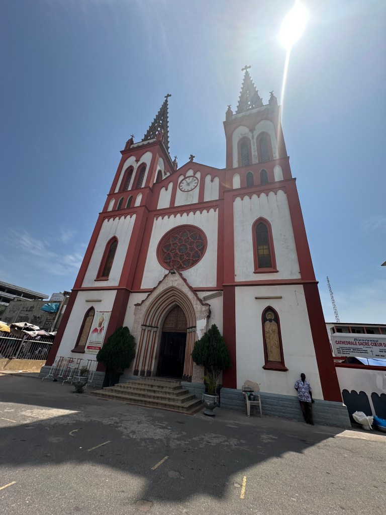 La Cathédrale de Lomé, ou plus exactement la Cathédrale du Sacré Cœur, se trouve au coeur même du quartier du Grand Marché. L’entrée est gratuite mais un homme plutôt insistant m’a demandé de payer l’accès à la Cathédrale. J’ai refusé et il a lâché l’affaire.