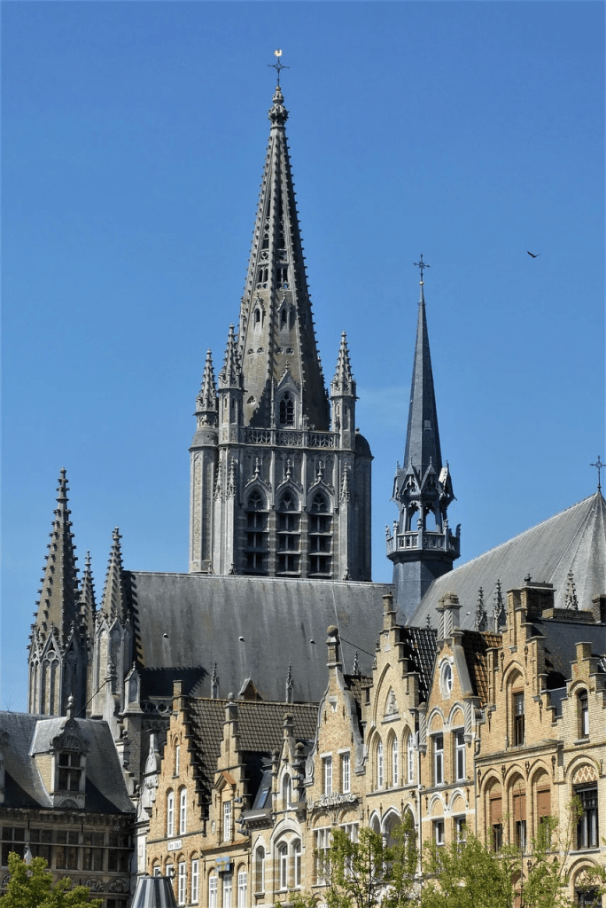 De style gothique, elle se trouve derrière la halle aux draps. L’ensemble architectural formé par la cathédrale et la hall est exceptionnel. Construite au XIIe et XIIIe siècle, la cathédrale a été totalement détruite pendant la première guerre mondiale puis reconstruite à l’identique entre 1922 et 1930. Seule la flèche qui n’avait jamais été achevée a été bâtie plus haut que l’originale ; elle culmine à 102 mètres.