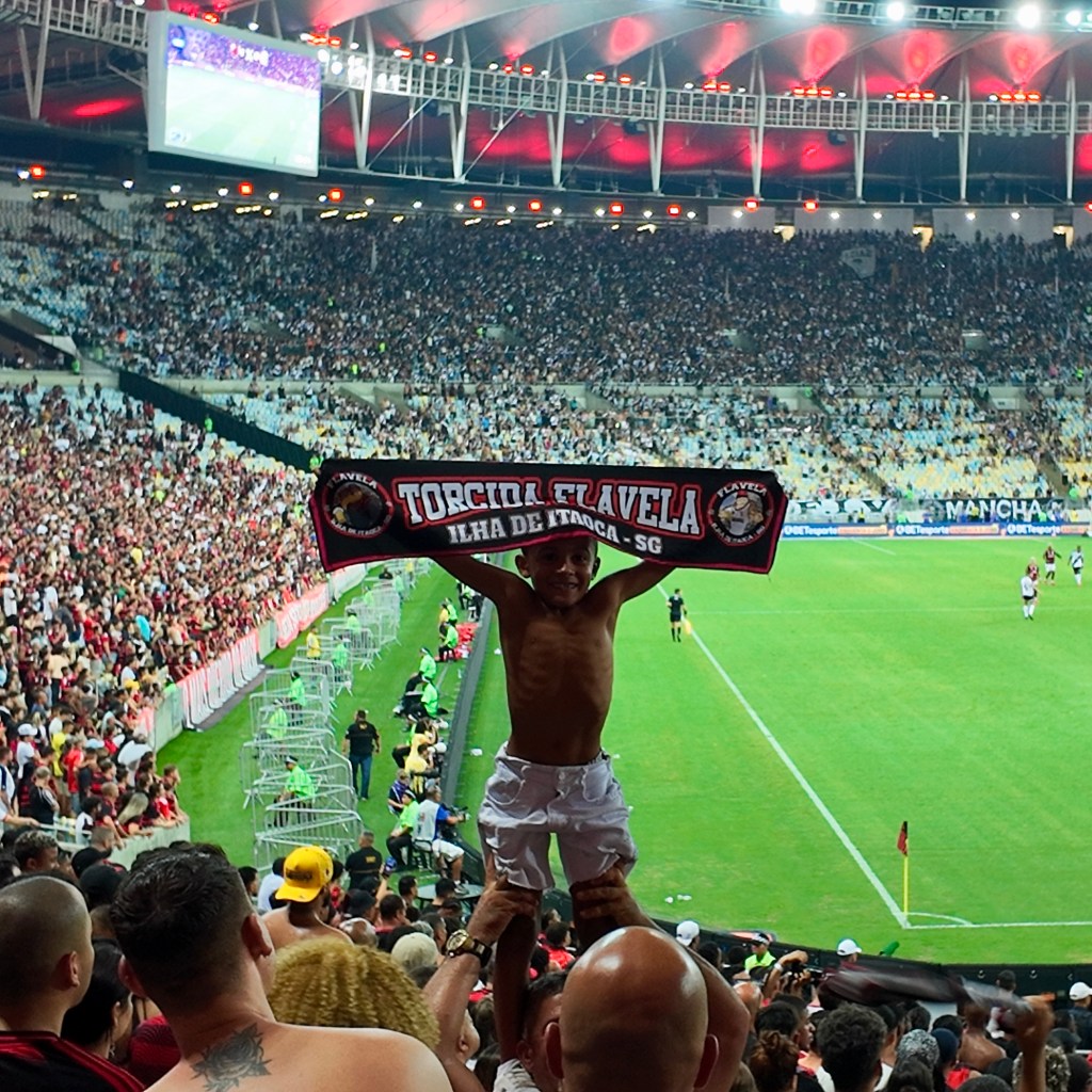 Quand on pense au Maracaña, on pense forcément à la défaite du Brésil face à l’Uruguay lors de la finale de la coupe du monde de 1950 ⚽️. C’est dans ce stade que le Roi Pelé a marqué son 1000e but. C’est un stade mythique. Avec 220 000 places, il était lors de son inauguration en 1948 le plus grand stade du monde mais sa capacité a aujourd’hui été réduite à 78 000 pour des raison s de sécurité. Ce stade accueille aujourd’hui quatre clubs résidents : le Flamengo, le Fluminense, le Botafogo et le Vasco de Gama. Ce soir, nous allons justement assister à un classico entre Flamengo et Vasco de Gama. L’ambiance est survoltée mais bon enfant. Nous ressentons tous les cinq un frisson au moment d’entrer dans le stade et d’entendre les chants des supporters.