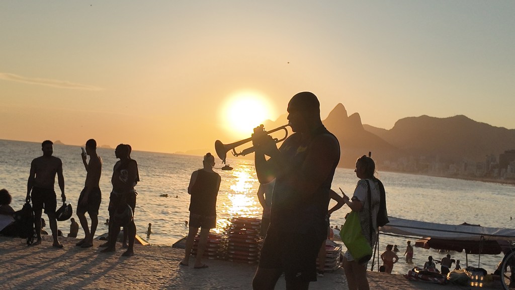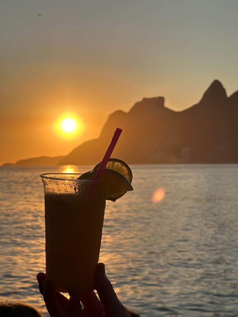 Le soir, nous nous sommes rendus à Ipanema et plus précisément à la pointe d’Arpoador pour admirer le coucher de soleil. C’est magique. 🌅