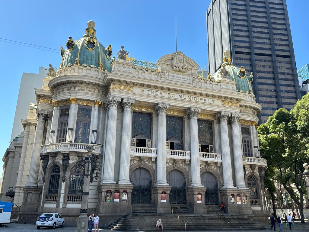 Nous passons à pied devant la cathédrale San Sébastian et entrons avec curiosité dans cette édifice pyramidal (entrée gratuite). C’est une vraie curiosité architecturale. La station de tramway se trouve juste à côté de la cathédrale mais il ne fonctionne malheureusement pas au moment où nous passons. Nous rentrons à pied au hasard des rues pendant deux bonnes heures. Les immeubles délabrés et colorés donnent à Rio un air cubain. Nous passons par la place du théâtre municipal et de la bibliothèque nationale (n’hésitez pas à y entrer, c’est gratuit).