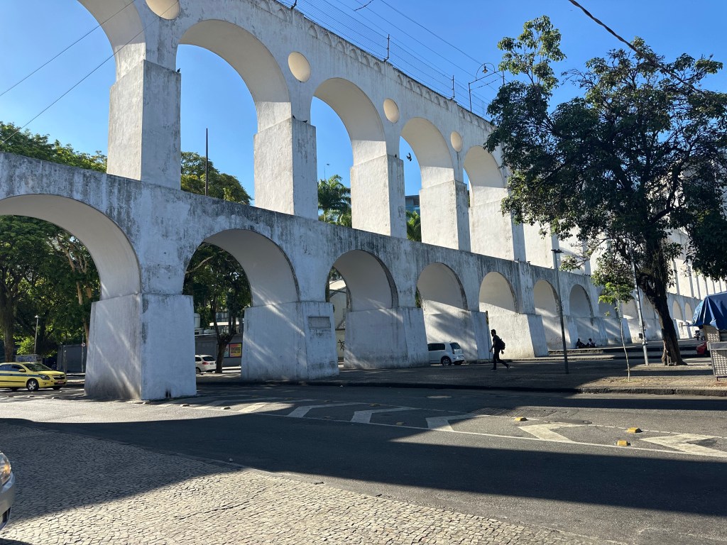Pour bien connaître une ville, il faut s’y déplacer à pied un peu au hasard des rues. C’est ce que nous avons l’habitude de faire… peut-être un peu trop au goût des enfants. En sortant de l’appart, ce qui nous frappe en premier lieu c’est la température. Nous sommes passés de 4 degrés en France à 40 à Rio. Pour moi, le gros coup de chaud allait arriver très rapidement 🥵 : trois nuits difficiles, maux de tête, sans doute un peu de fièvre et une soif constante. Hugo de son côté a mal à la gorge sans doute à cause de la clim. Rien de grave.