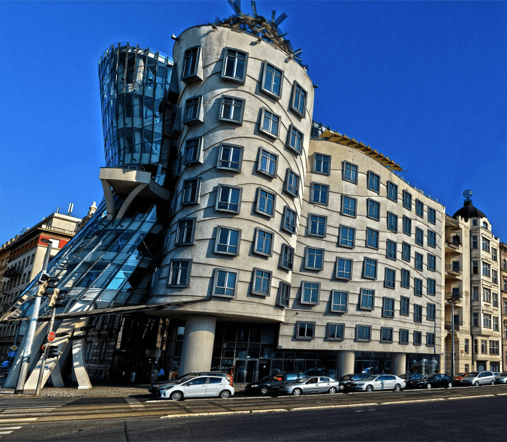 Nous revenons à pied à notre appartement. Il est situé juste en face de la maison dansante qui est un des symboles modernes de Prague. C’est une oeuvre de l’architecte Franck Gehry. L’édifice se compose d’une tour de pierre qui représente le danseur Fred Astaire et d’une tour de verre qui représente Ginger Rogers. Nous ne faisons que passer devant. Il y a un rooftop et un restaurant dans le bâtiment … mais il est un peu tôt.