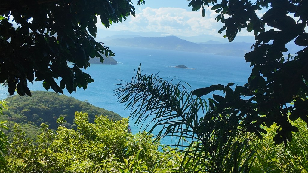 Ni singes, ni serpents mais il convient d’être prudent car l’île est connue pour abriter des cobras et des serpents corail considérés comme les plus venimeux du Brésil. Attention donc où vous mettez les pieds 🐍. La randonnée alterne des phases courtes plutôt pentues, des faux plats et des descentes. Les points de vue sont magnifiques.