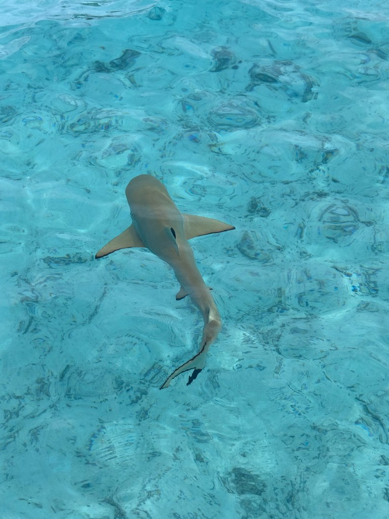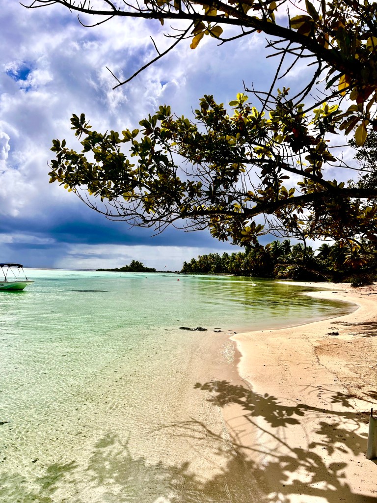 Le repas de midi est pris sur le Motu Tautau, un îlot corallien de rêve. On a trop bien mangé 😋 : sashimis de thon à l’ail, espadon au lait de coco… Le combo gagnant avec un bon rhum pour arroser tout ça.