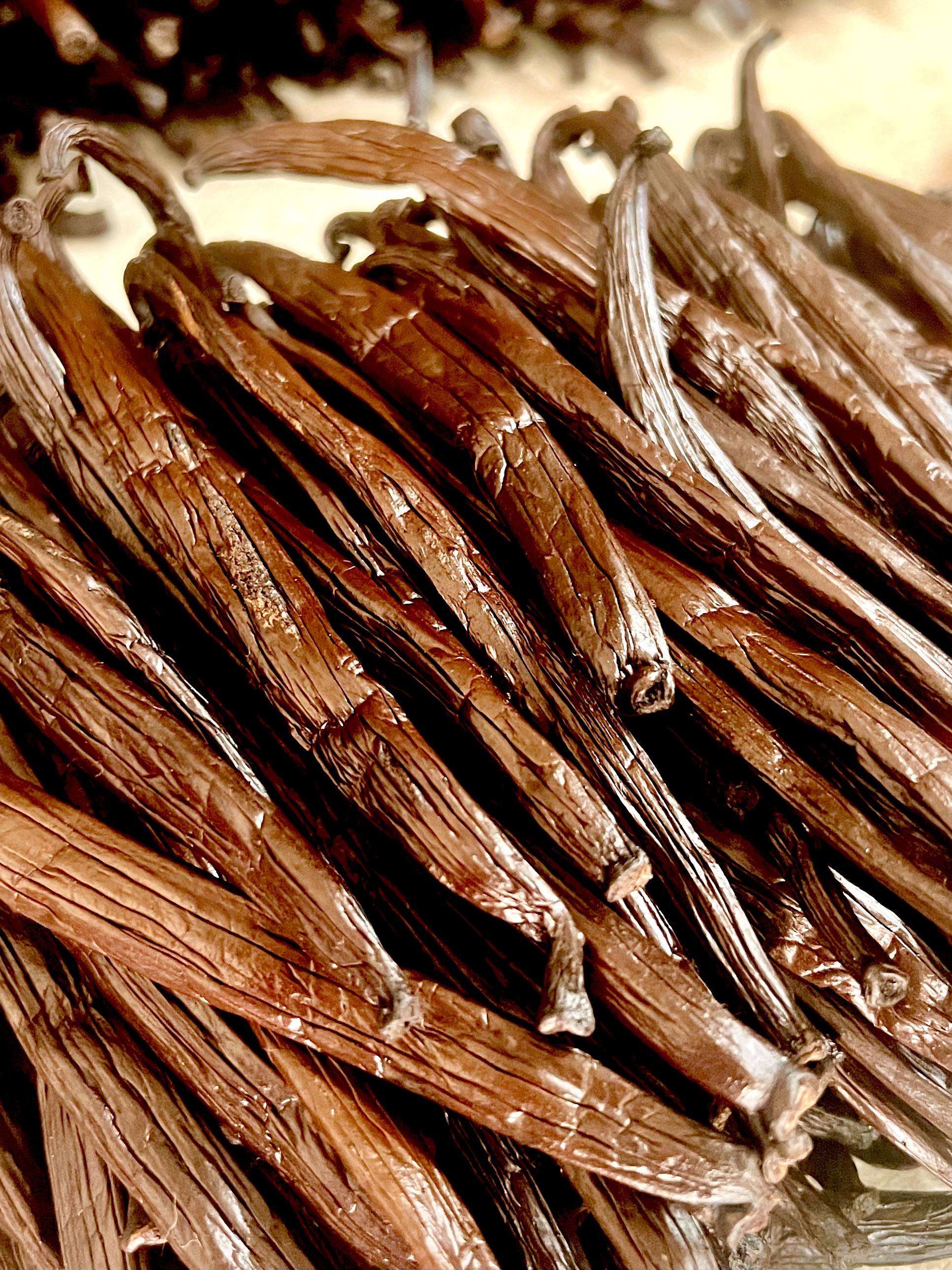 Notre bateau reprend la direction de la petite île de Taha’a où nous accostons au lieu-dit de la Vallée de la vanille. Nous sommes accueillis dans une très belle vanilleraie où une jeune polynésienne nous explique la pollinisation, la culture et l’exploitation de l’or noir polynésien. Difficile de ne pas acheter quelques gousses (8000 XPF les 25 gousses).