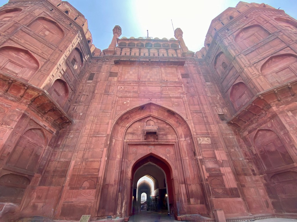 On pénètre dans le complexe par une immense porte d’entrée – la porte de Lahore – au sommet de laquelle le drapeau indien fut hissé pour la première fois.