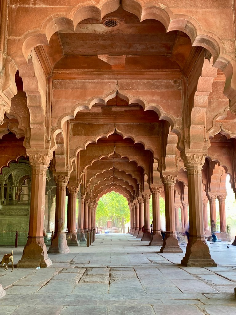 Le calme qui règne ici contraste avec l’agitation de la ville. L’allée centrale mène directement au Diwan-i-Aam. C’est la salle des audiences publiques où l’empereur recevait les doléance de ses sujets.