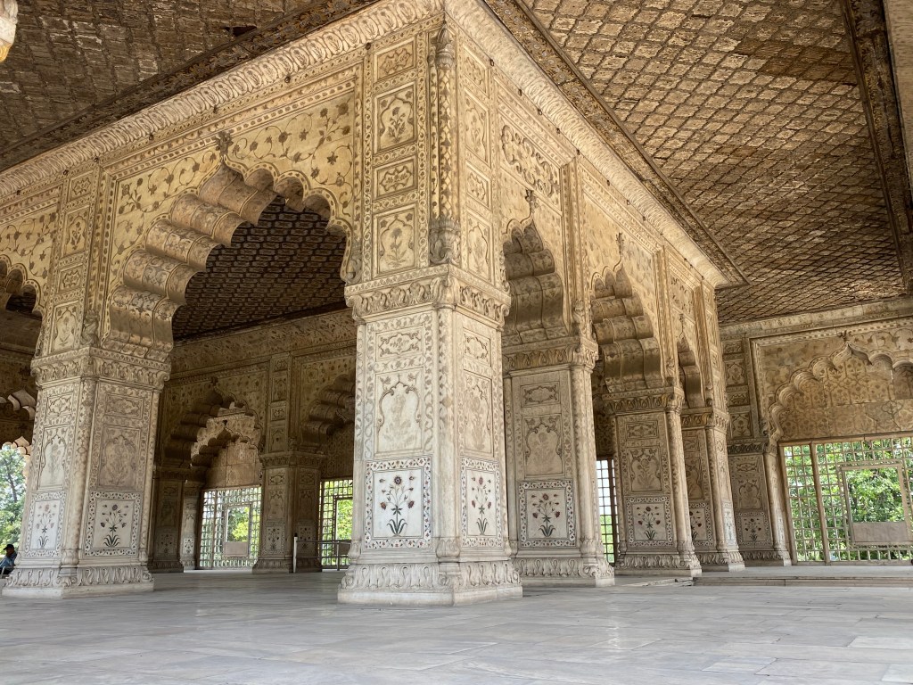 On accède ensuite à de magnifiques pavillons privés plus où moins bien conservés. Plus qu’un palais, il s’agit en réalité d’un immense complexe qui compte plusieurs palais impériaux, des mosquées de marbre blanc, deux salles d’audience, des bains royaux et des pavillons. Pour tout dire, cette visite nous a plu mais le Fort-Rouge de Delhi nous a fait une moins belle impression que le Fort-Rouge d’Agra qui est bien mieux conservé (voir notre article sur Agra). L’ensemble est toutefois remarquable.