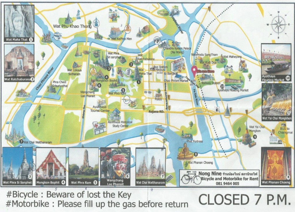 Infos pratiques sur le Wat Yai Chaimongkhon : Entrée à 20 baths / pers. (gratuit pour les enfants).