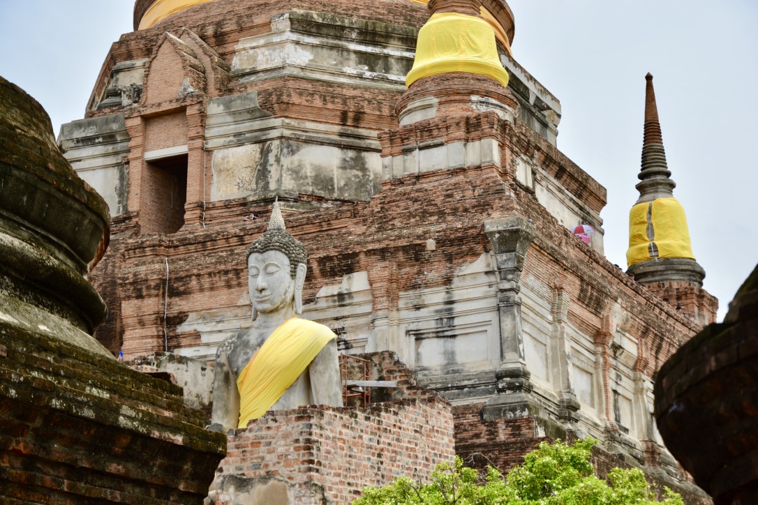 Nous avons eu un coup de ❤️ pour le Wat Yai Chaimongkhon. Il se caractérise par une multitude de bouddhas drapés d’étoffes jaunes. Une splendeur. Le chedi (partie haute du temple) fait plus de 60 mètres de haut et offre une vue dégagée sur le site.