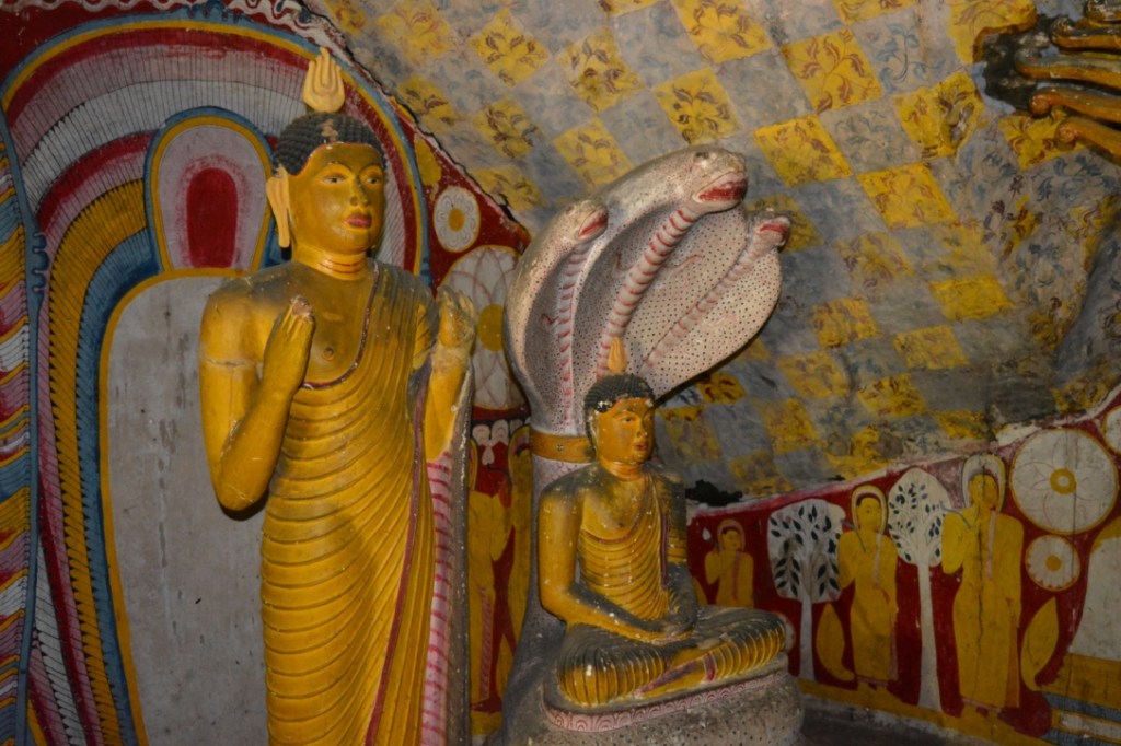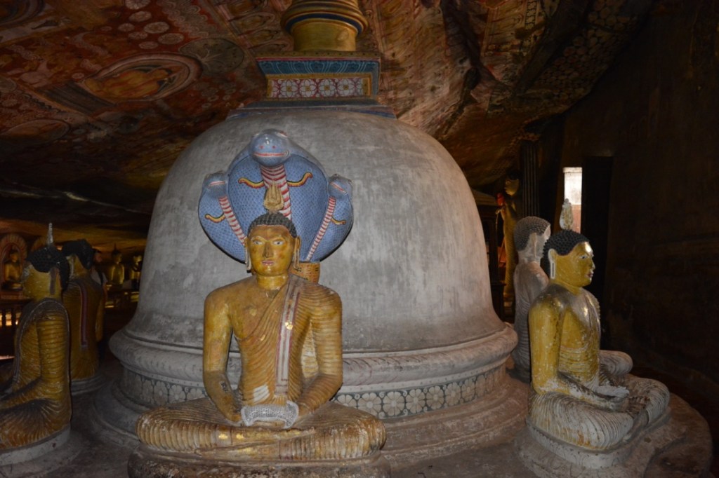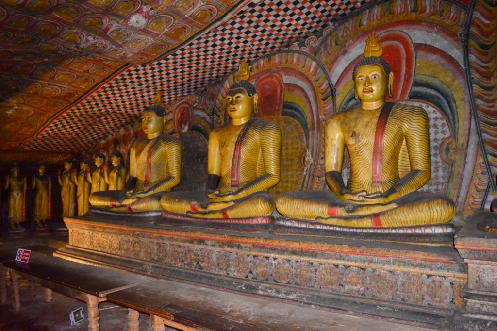 Le site de Dambulla trouve son origine un siècle avant J.-C. quand le Roi Valagamba y trouva refuge après la chute de la capitale Anuradhapura tombée aux mains des tamouls. Il ne s’agissait à l’époque que de simples cavités monacales. Quatorze ans plus tard, lorsqu’il parvint à reconquérir son trône, il transforma ces grottes troglodytes en un sanctuaire qui ne cessa d’être amélioré pendant 2000 ans par les rois sri lankais qui se succédèrent. Au total, le site compte aujourd’hui quatre monastères, 80 grottes, plus de 150 statues de Bouddha et 2100 m2 de fresques polychromes incroyables dont certaines ont été peintes il y a plus de vingt siècles. C’est sur ce site fondateur que débuta en 1848 le mouvement nationaliste cinghalais.